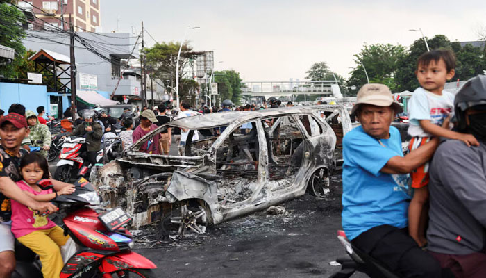 جکارتہ :انڈونیشیا میں اراکین پارلیمنٹ کی تنخواہوں میں اضافے کے خلاف عوام کے شدید احتجاج کے بعد ملک کے کئی شہروں میں ہنگامہ آرائی ۔ مدارالحکومت جکارتہ میں پارلیمنٹ ہاؤس کا گھیراؤ کیا]پولیس سے جھڑپیں بھی ہوئیں۔ مشتعل مظاہرین نے وزیر خزانہ کا گھر لوٹ لیا