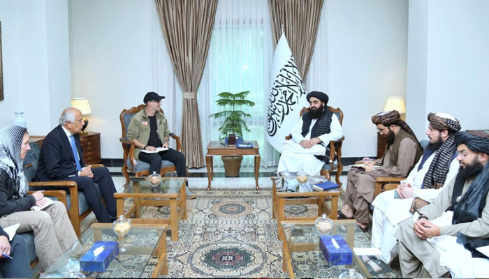 امارات اسلامیہ کے وزیر خارجہ امیر خان متقی نے امریکی صدر کے خصوصی ایلچی برائے یرغمالی امور ایڈم بوہلر، سابق امریکی نمائندہ خصوصی برائے افغانستان زلمے خلیل زاد اور ان کے ہمراہ آنے والے وفد سے ملاقات کی۔