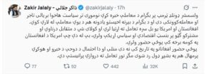 ذاکر جلالی نے مزید کہا کہ امریکا کے افغانستان کے کسی بھی حصے میں فوجی موجودگی برقرار رکھے بغیر افغانستان اور امریکہ باہمی احترام اور مشترکہ مفادات پر مبنی اقتصادی اور سیاسی تعلقات قائم کر سکتے ہیں۔