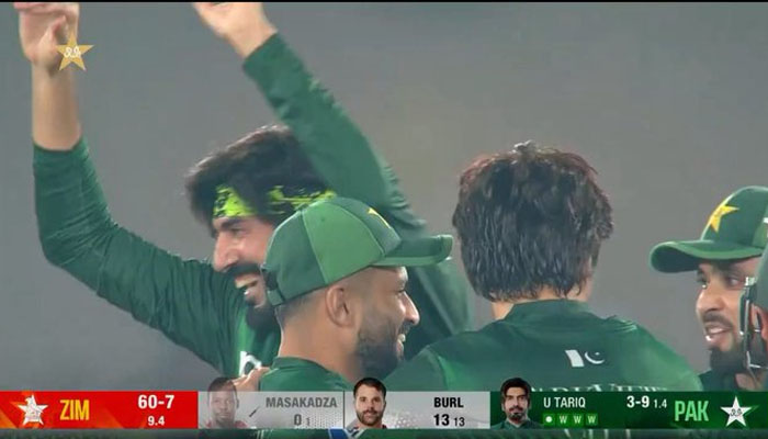 عثمان طارق نے ٹونی منیونگا، تشنگا میسکیوا اور ولنگٹن مساکاڈزا کو پویلین کی راہ دکھاتے ہوئے ہیٹ ٹرک مکمل کی۔ انہوں نے عمدہ بولنگ کا مظاہرہ کرتے ہوئے 18 رنز دے کر 4 وکٹیں انے نام کیں۔