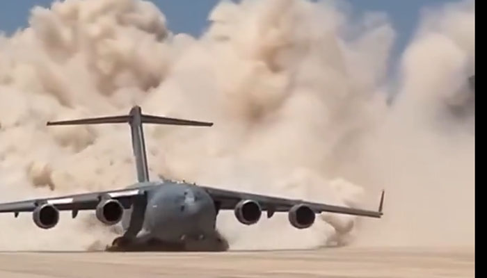 فضا کے “جن“ امریکی فضائیہ کے C-17 گلوب ماسٹر طیارے کی صحرا سے اڑان بھرتے ہوئے فوٹیج دیکھئیے۔۔ فوجی اور بھاری سازوسامان کی نقل وحمل کے لئے استعمال ہونے والا چار انجنوں سے لیس یہ طیارہ ہے جسے بنانے والی کمپنی لاک ہیڈ مارٹن کا دعویٰ ہے کہ یہ حادثے کا شکار نہیں ہوسکتا ۔