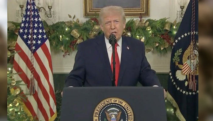 واشنگٹن :امریکی صدر ڈونالڈ ٹرمپ نے اپنے اقتدار کے 11 ماہ مکمل ہونے پر وائٹ ہاؤس سے قوم سے خطاب کرتے ہوئے کہا کہ ٹیرف ان کا پسندیدہ انگریزی لفظ ہے اور اسی پالیسی کی مدد سے انہوں نے اپنے پہلے 10 ماہ میں دنیا بھر میں پاک بھارت سمیت 8 جنگیں رکوائیں۔ ٹرمپ کے مطابق ٹیرف نہ صرف امریکا کے لیے ایک مؤثر سفارتی ہتھیار ثابت ہوئے بلکہ ان کی بدولت امریکی معیشت نے توقع سے کہیں زیادہ آمدنی بھی حاصل کی۔