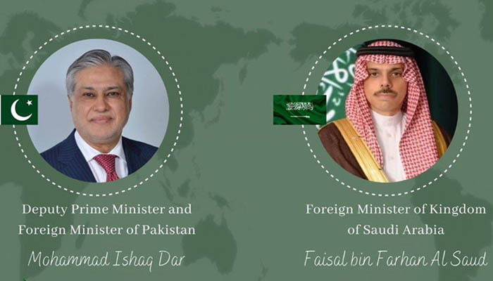 اسحاق ڈار نے دوطرفہ تعلقات میں مثبت پیش رفت پر اطمینان کا اظہار کیا، جبکہ شہزادہ فیصل بن فرحان نے باہمی تعلقات کو مزید مضبوط اور فروغ دینے کے عزم کا اعادہ کیا۔
