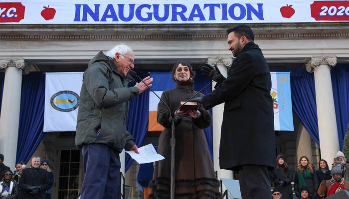 نیویارک:نومنتخب میئر نیویارک ظہران ممدانی نے عوامی حلف برداری کی تقریب سے خطاب کرتے ہوئے کہا ہے کہ کمپالا سے نئی دہلی اور نیویارک تک پھیلے ہوئے اپنے خاندان کا شکریہ، اور "میری بیوی رما کا شکریہ، میرے بہترین دوست ہونے کے لئےے، اور ہمیشہ مجھے روزمرہ کی چیزوں میں خوبصورتی دکھانے کے لیے۔ اور سب سے زیادہ شکریہ نیویارک کے شہریوں کا جنہوں نے مجھے منتخب کیا۔ ان سے برنی سانڈرس نے حلف لیا۔