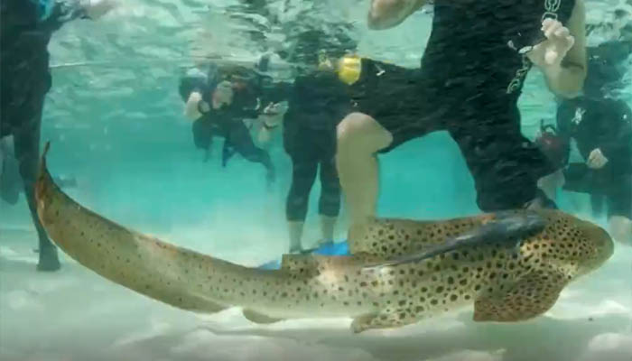 بنکاک :معدوم ہوتی ‘لیپرڈ شارک’ (Leopard Sharks) کو بچانے کے لیے تھائی لینڈ نے ایکویریم میں پلے ہوئے ننھے شارک کے بچوں کو جنوبی جزیرے مائیٹن کے قریب سمندر میں آزاد کر دیا۔