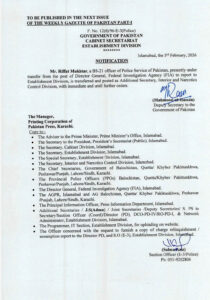 اسلام آباد: اسٹیبلشمنٹ ڈویژن نے رفعت مختارکی بطورایڈیشنل سیکرٹری داخلہ تعیناتی منسوخ کردی۔