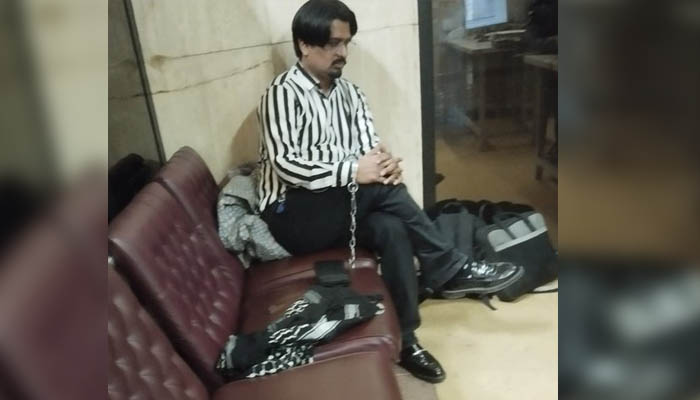بلال غوری کا موبائل فون بھی قبضے میں لے لیا گیا ہے ۔ بلال غوری کی ایک تصویر بھی سامنے آئی ہے جس میں انکے ہاتھوں میں ہتھکڑیاں دیکھی جا سکتی ہیں ۔ بلال غوری بنگلہ دیش الیکشن کی کوریج کے لیے ڈھاکہ جا رہے تھے۔ اور ان کی کراچی سے فلائٹ تھی۔