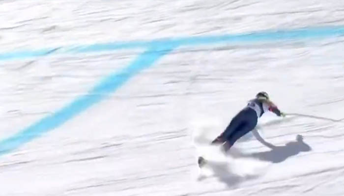 41 سالہ تجربہ کار اسکیئر اپنی رن کے آغاز میں ہی توازن برقرار نہ رکھ سکیں اور تیز رفتاری کے باعث ٹریک سے باہر جا گریں۔