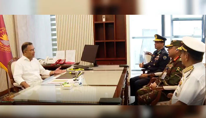 ڈھاکہ:بنگلہ دیش کے نومنتخب وزیراعظم طارق رحمان نے تینوں مسلح افواج کے سربراہان سے ملاقات کی ہے۔ ملاقات کے دوران انہوں نے ملکی ترقی کے لئے اپنی ترجیحات پر تبادلہ خیال کیا اور خطے میں استحکام کے لئے بنگلہ دیش کی مسلح افواج کو خراج تحسین پیش کیا۔