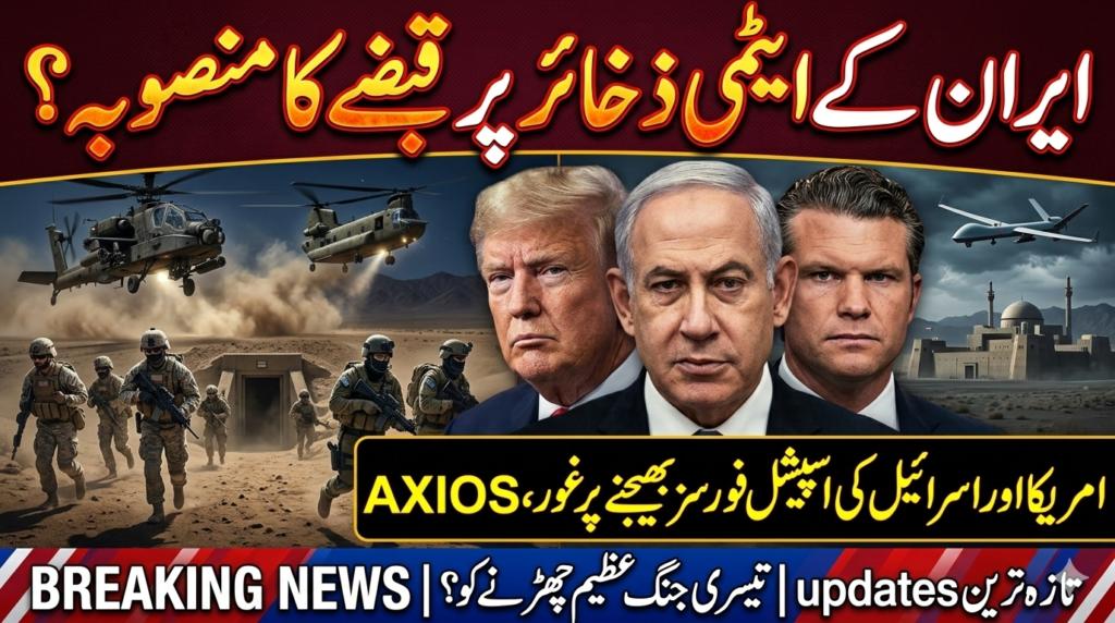 واشنگٹن / یروشلم :امریکی نیوز ویب سائٹ ‘ایکسیاس’ (Axios) نے سفارتی اور انٹیلی جنس ذرائع کے حوالے سے ایک سنسنی خیز انکشاف کیا ہے کہ امریکا اور اسرائیل، ایران کے ایٹمی پروگرام کو غیر فعال کرنے کے لیے ایک انتہائی اور خطرناک فوجی آپشن پر سنجیدگی سے غور کر رہے ہیں۔ اس مجوزہ منصوبے کے تحت امریکی اور اسرائیلی اسپیشل فورسز کو براہ راست ایرانی سرزمین کے اندر بھیج کر اس کے افزودہ یورینیم کے ذخائر پر قبضہ کرنا شامل ہے۔