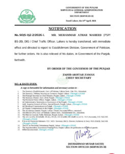لاہور: چیف ٹریفک آفیسر کی تبدیلی، ڈاکٹر اطہر وحید عہدے سے فارغ