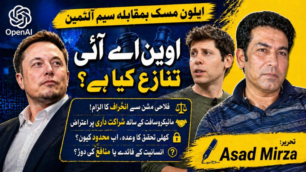 آخر میں، یہ کہنا غلط نہ ہوگا کہ ایلون مسک اور سیم آلٹمین کا مقدمہ دراصل ایک علامت ہے—ایک ایسے دور کی علامت جہاں نظریات اور منافع آمنے سامنے کھڑے ہیں، اور جہاں ٹیکنالوجی کا مستقبل چند طاقتور اداروں کے فیصلوں سے طے ہو رہا ہے۔ پاکستان کے لیے یہ لمحہ سوچنے کا ہے کہ آیا ہم اس تبدیلی کے محض تماشائی بنے رہیں گے یا اس میں اپنا کردار بھی ادا کریں گے۔ اگر ہم نے اب بھی سنجیدگی نہ دکھائی تو آنے والے وقت میں ہم صرف مصنوعی ذہانت کے صارف ہوں گے، اس کے معمار نہیں—اور یہی سب سے بڑا خطرہ ہے۔